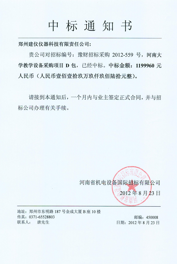 豫財招標采購2012-559號D包