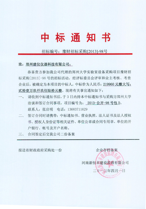 豫財招標采購[2013]-98號