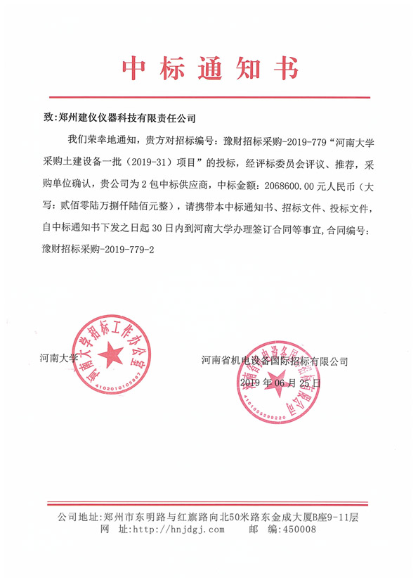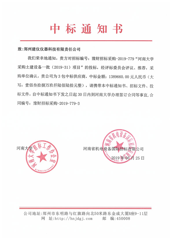 河南大學中標通知書